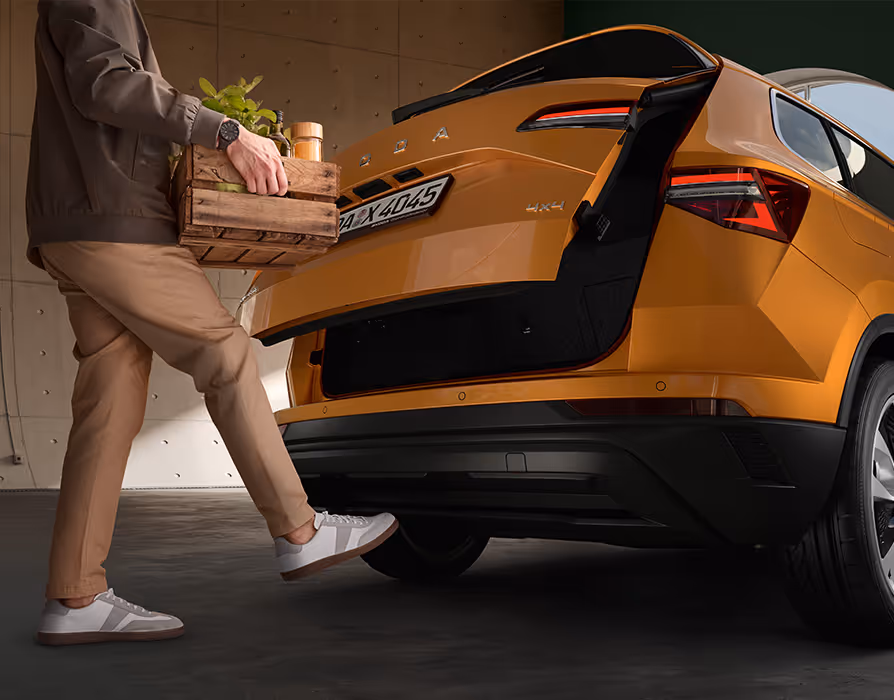 Hände voll? Kein Problem. Dank eines Sensors unter dem Stoßfänger können Sie den Gepäckraum berührungslos mit einem Fußschwung öffnen.