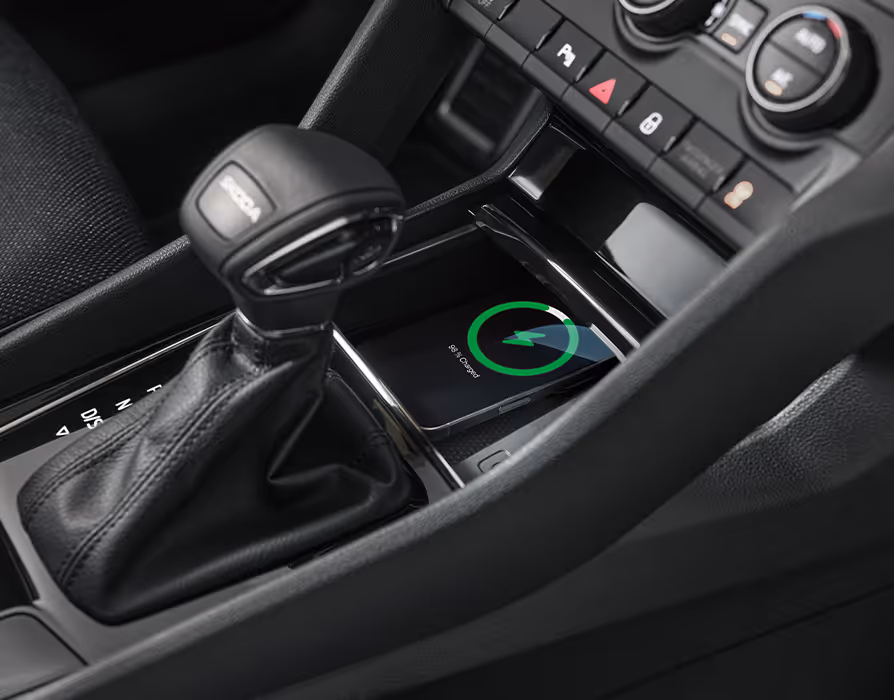 Sie lädt Ihr Gerät während der Fahrt kabellos auf. Über zwei USB-C-Anschlüsse können Sie Ihre externen Geräte einfach mit dem Infotainmentsystem verbinden.